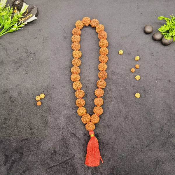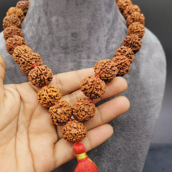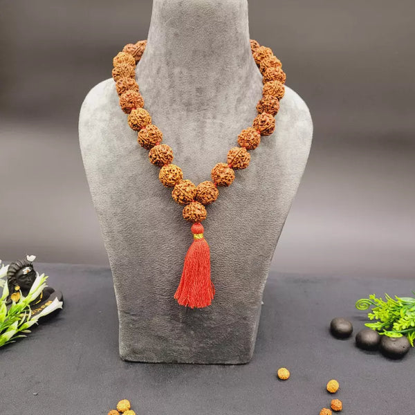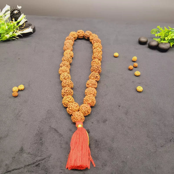 Genuine Nepali 5 Mukhi Rudraksha Kantha Mala 27+1 Beads | Five Face Rudraksha Necklace for Meditation & Vastu