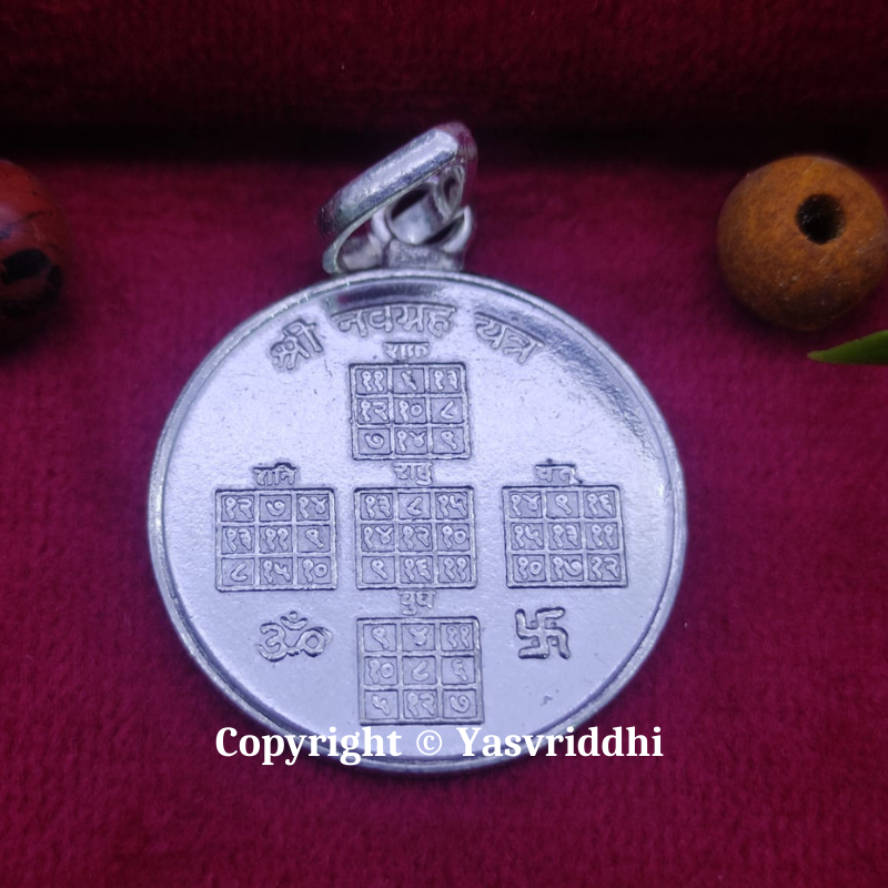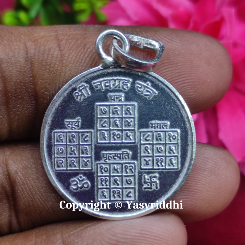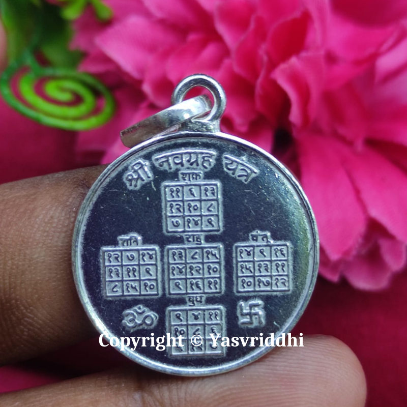 Pure Silver Shree Navgrah Yantra Pendant For Health, Wealth, Spiritual Harmony, & Cosmic Planetary Balance