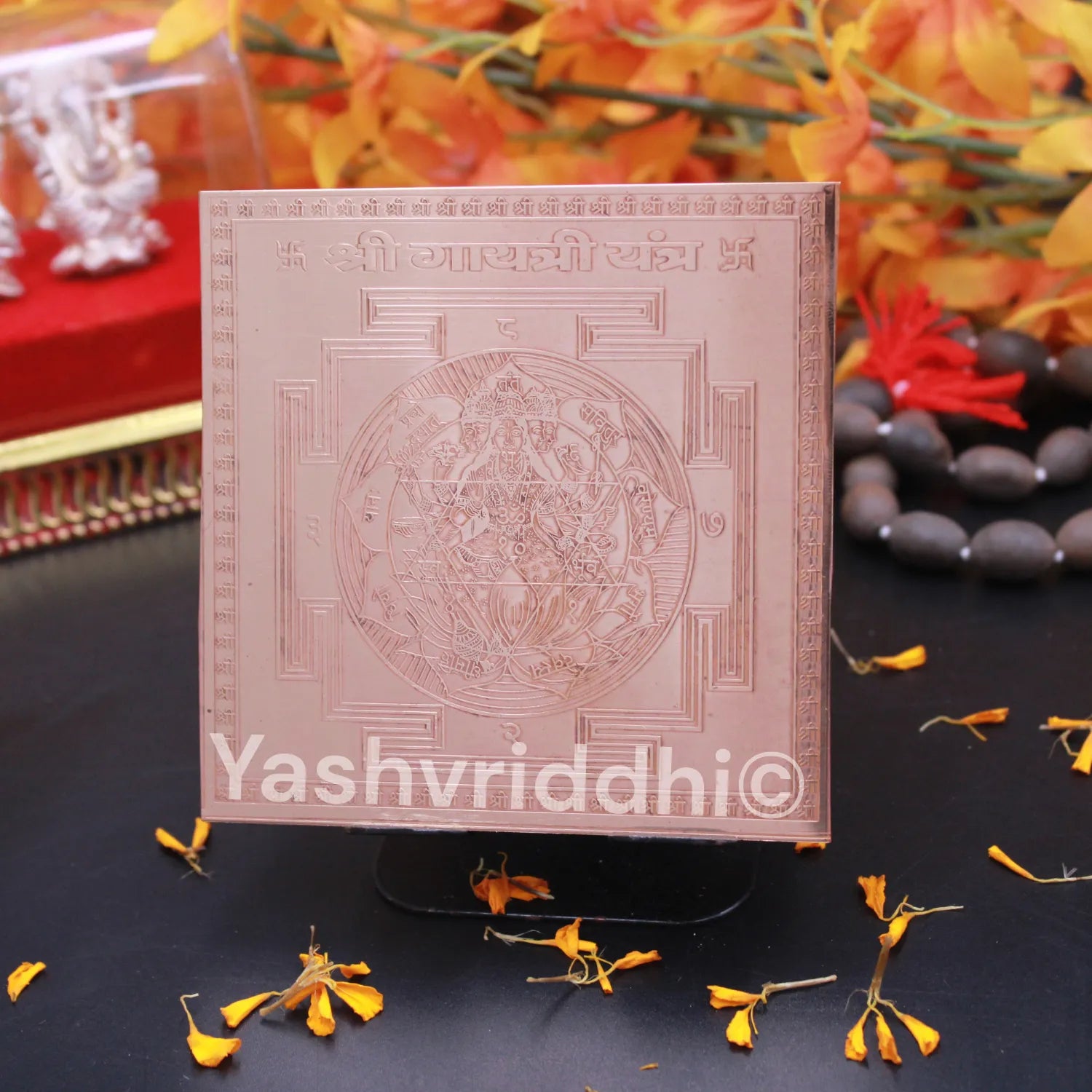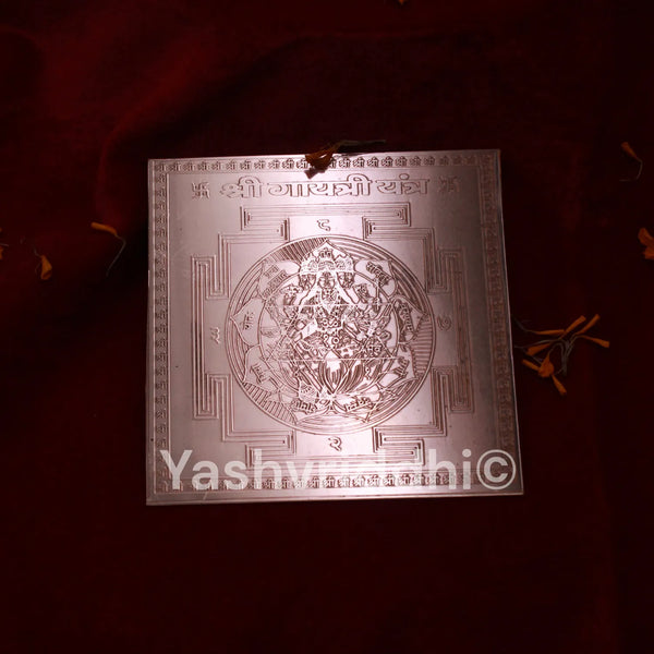The Shree Gayatri Yantra engraved on a 4-inch pure copper plate is a powerful spiritual tool dedicated to Maa Gayatri, the Goddess of wisdom, purity, and divine light. This sacred yantra is known to enhance intellect, focus, clarity, and spiritual growth while offering divine protection from negative energies. Crafted with precise Vedic geometry on high-quality copper, this yantra radiates strong positive vibrations. It is ideal for students, professionals, meditators, spiritual seekers, and anyone wishing to bring harmony, peace, and enlightenment into their life. Place it in your home, study room, office, or pooja altar to invite clarity of mind, blessings of Maa Gayatri, and a balanced, peaceful environment.