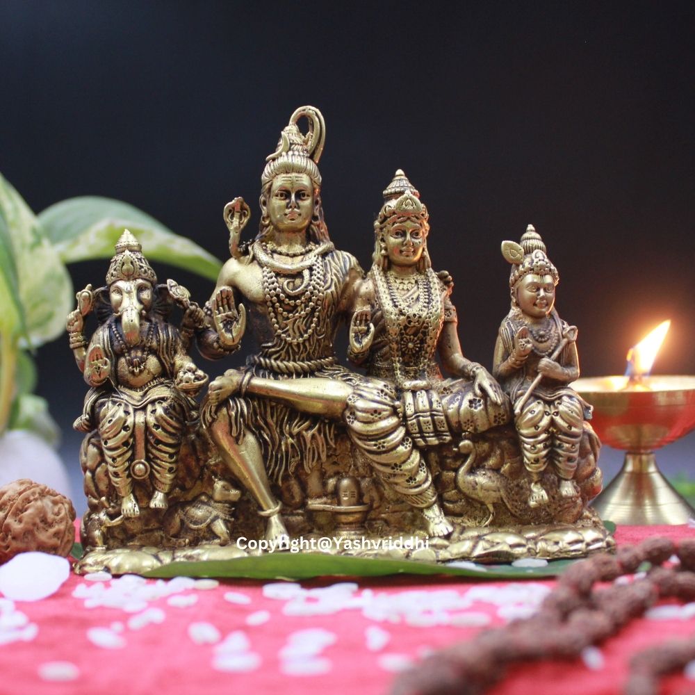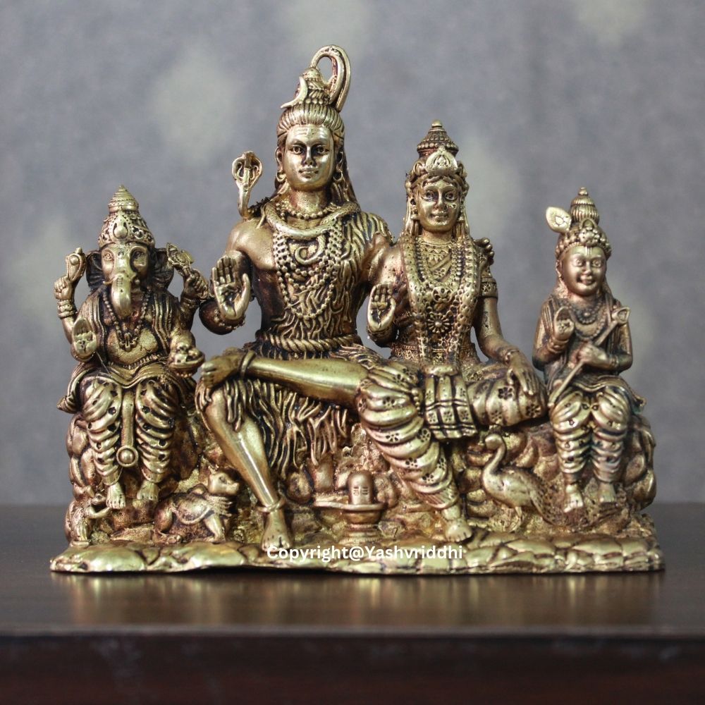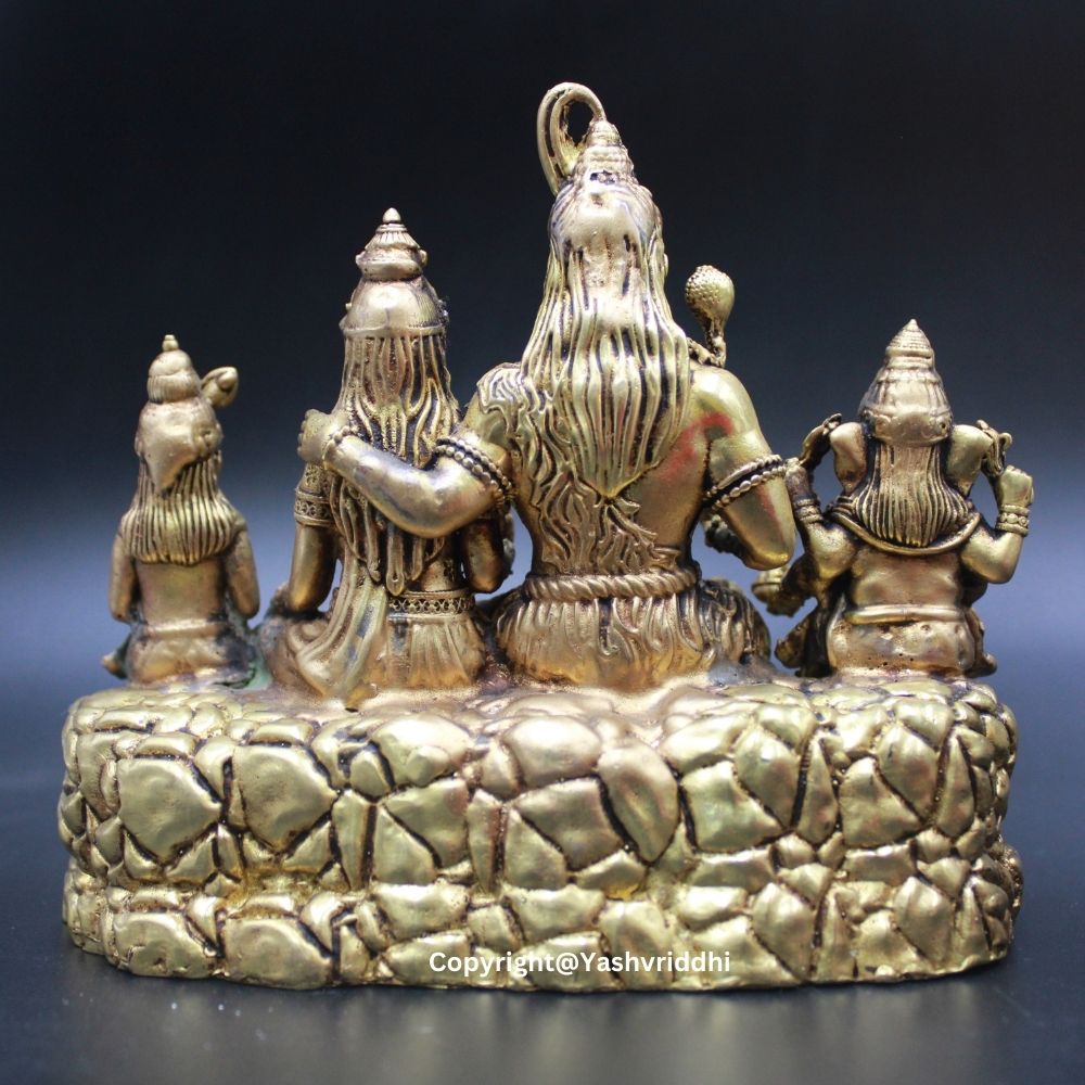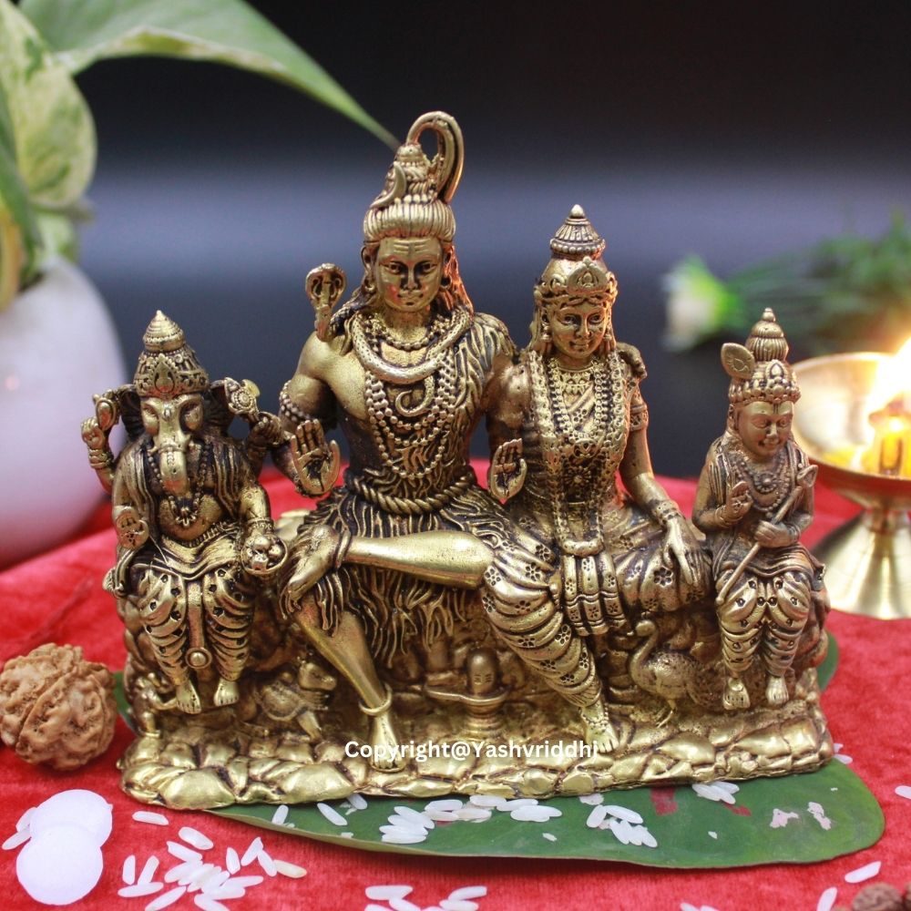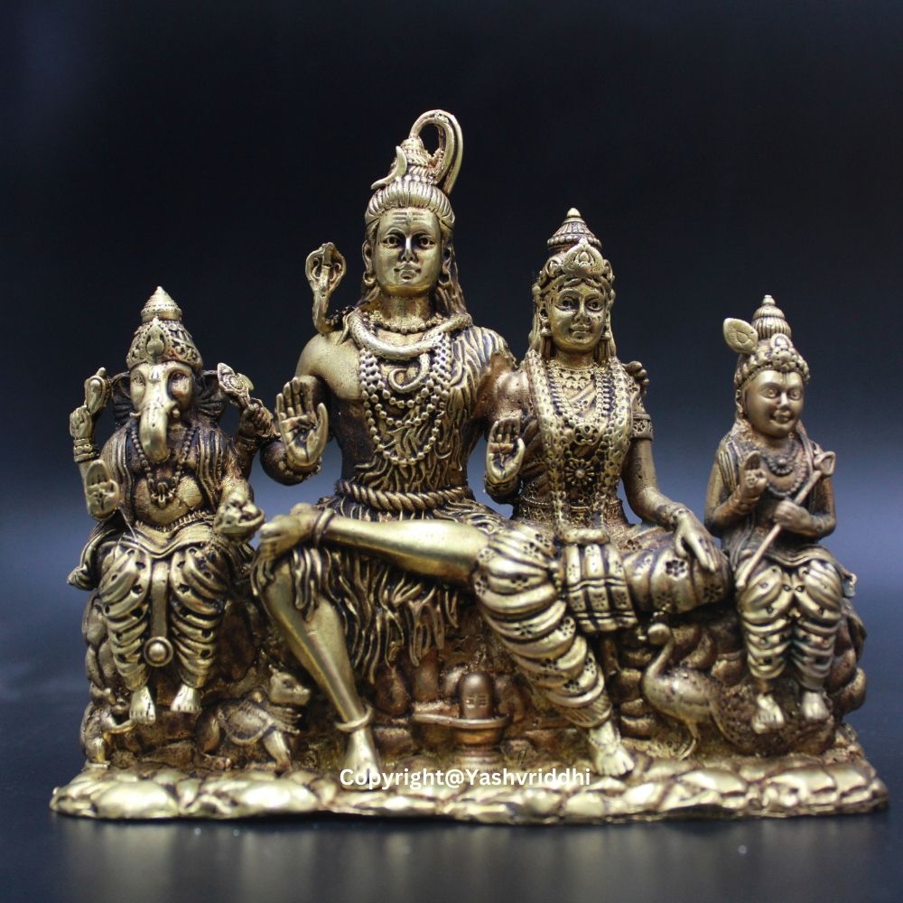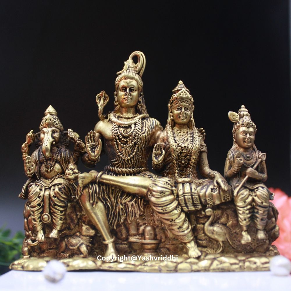 This Shiv Pariwar idol is a representation of divine balance and familial love. Lord Shiva represents cosmic power, Parvati embodies nurturing energy, Ganesha brings wisdom and prosperity, while Kartikeya stands for courage and leadership. Together, they bless your home with peace, protection, and prosperity.