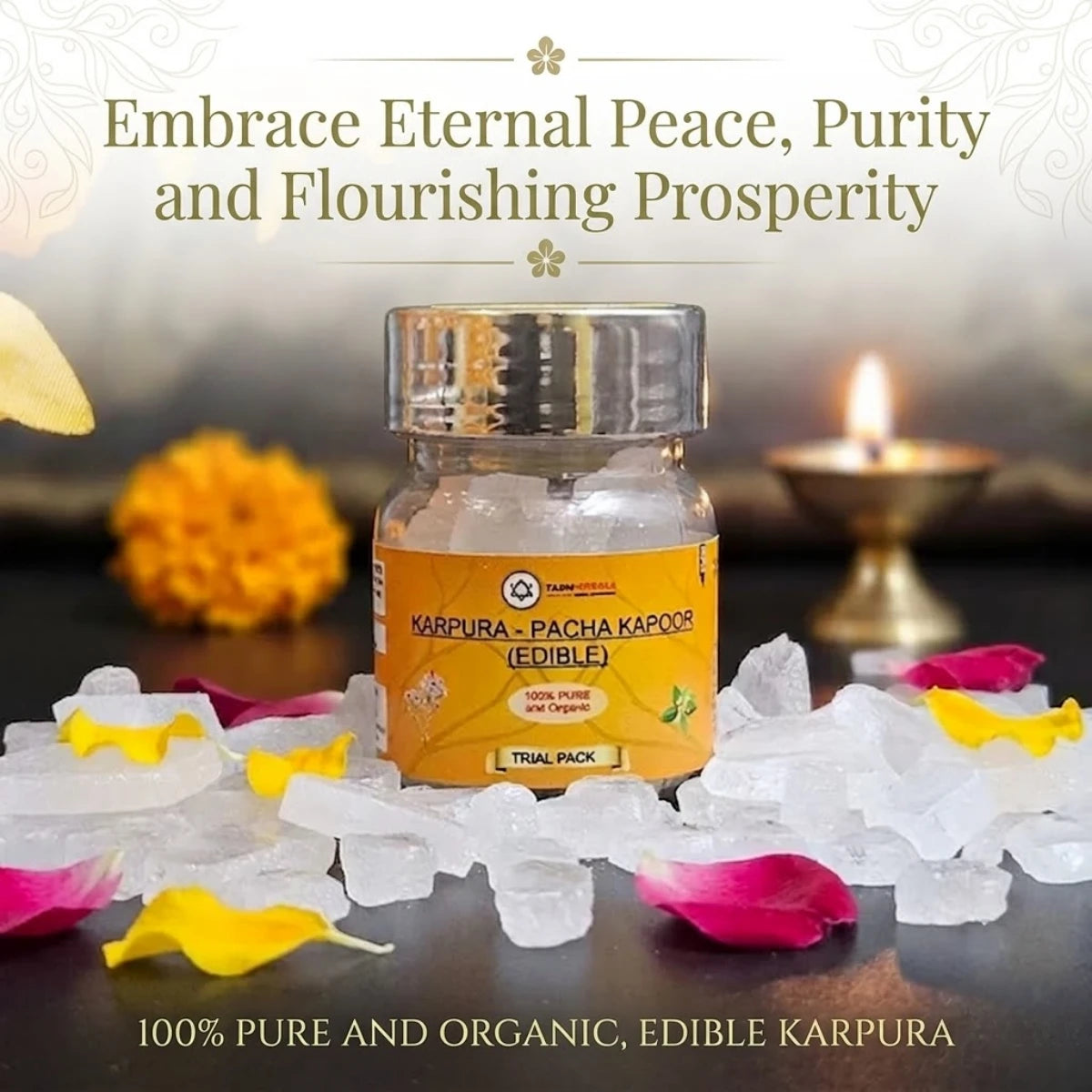 Unlike synthetic alternatives, our Bhimseni Kapoor (also known as Pacha Kapoor or Desi Kapoor) is derived directly from the pine tree. It is 100% natural, crystalline, and so pure it is classified as Edible Grade. Perfect for Aarti and traditional rituals, it burns with a clean, bright flame, leaving zero soot or ash residue. Diffuse it in an Electric Camphor Diffuser or a Kapur Dani for a sweet Organic Fragrance that calms the mind and creates a positive aura.