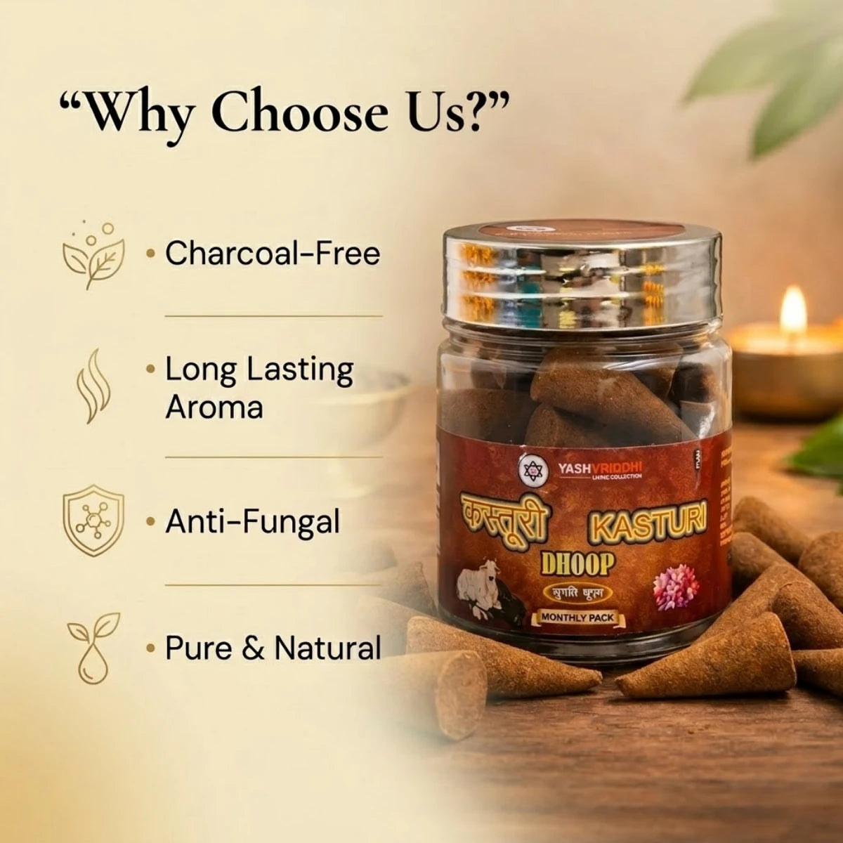 Kasturi Organic Dhoop Cones (50g Monthly Pack)