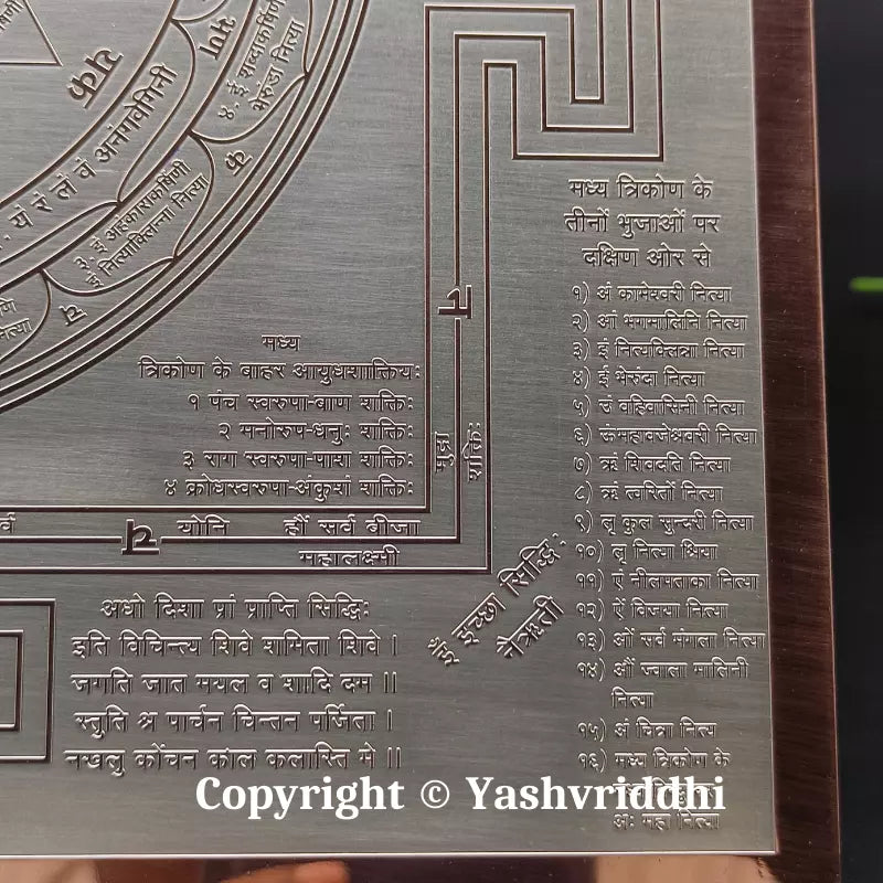 The Copper Shree Yantra is a revered emblem that represents the divine energies of Goddess Laxmi, the deity of wealth and abundance. Crafted from copper, it amplifies the yantra’s spiritual vibrations. By meditating on or displaying the Copper Shree Yantra, one seeks blessings for prosperity, success, and harmony. It resonates with the energies of wealth attraction and positivity, promoting financial growth and material well-being. This yantra holds transformative powers, aligning with cosmic forces to manifest abundance and guide seekers toward a life enriched with opulence, while also mitigating financial obstacles. It serves as a channel for invoking Laxmi’s blessings and inviting wealth into one’s life.
