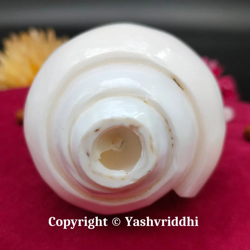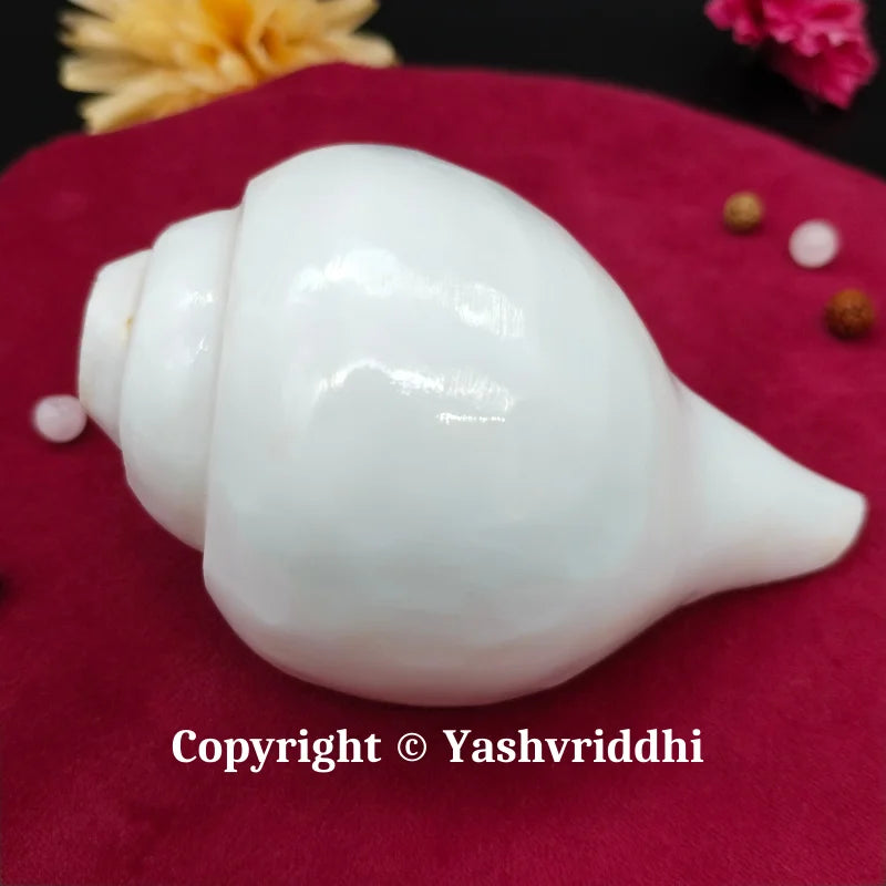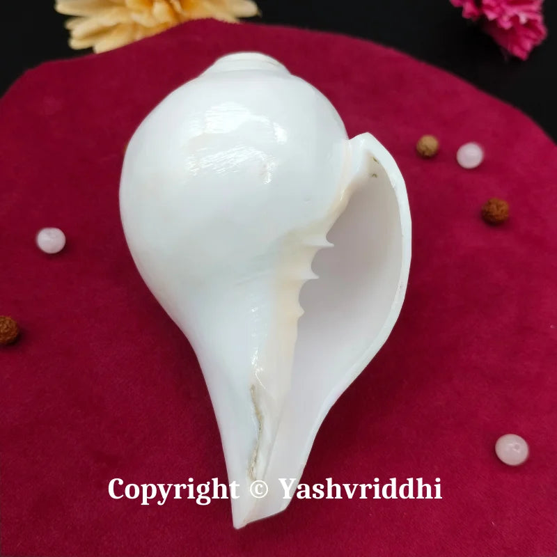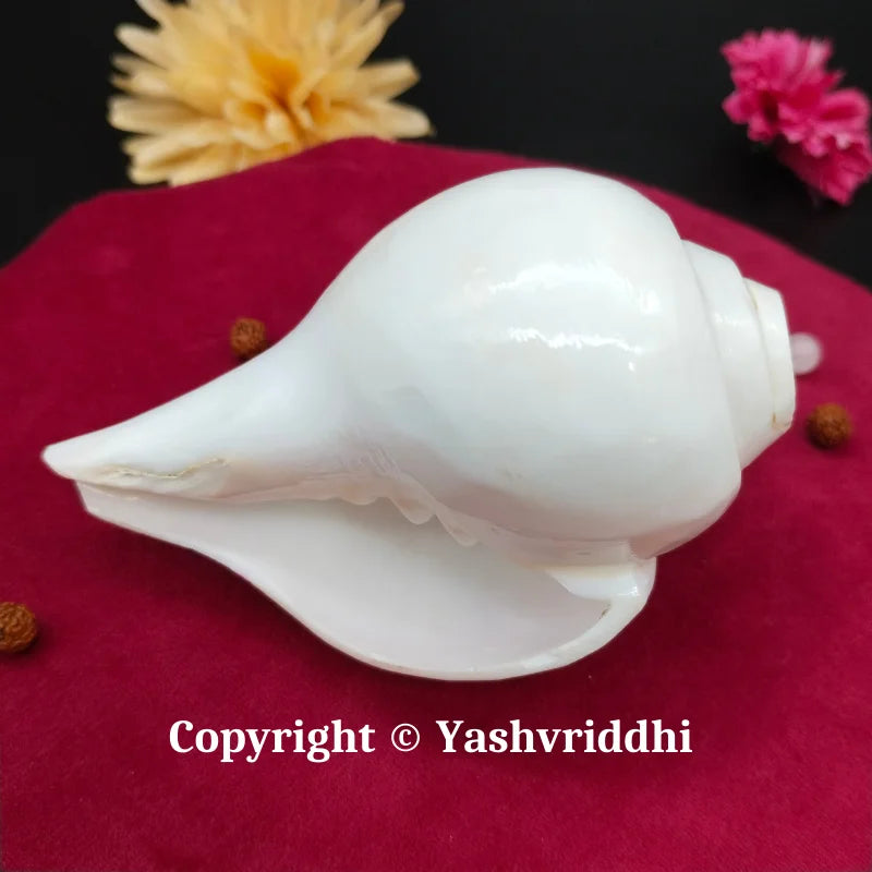 Benefits:- 1. Auspicious Beginnings:- Blowing the shank is often done at the beginning of religious ceremonies, pujas, and festivals. The sound is believed to purify the environment and create an auspicious atmosphere, marking the start of a sacred event.2. Invocation of Divine Energies:- The sound of the shank is considered divine, and its vibrations are believed to resonate with cosmic energy. Blowing the shank is thought to invoke the presence of deities and attract positive spiritual vibrations.3. Purification and Cleansing:- The resonating sound of the shank is believed to have a purifying effect on the surroundings. It is thought to dispel negative energies, purify the air, and create a harmonious environment for worship or meditation.4. Symbolism of Creation:- The spiral shape of the conch shell is symbolic of creation, preservation, and destruction—the fundamental aspects of the cosmos in Hindu philosophy. Blowing the shank is seen as a representation of the cosmic sound, the primordial vibration from which the universe emerged.5. Spiritual Awakening:- Blowing the shank is considered a form of yoga or spiritual practice. The deep breaths taken before blowing the conch are believed to oxygenate the blood and enhance lung capacity, promoting a sense of well-being and spiritual awakening.6. Cultural Traditions:- Blowing the shank is an integral part of various cultural traditions and rituals. It adds a ceremonial and traditional touch to events, connecting individuals with their cultural heritage.7. Positive Impact on the Mind:- The rhythmic sound of the shank is believed to have a calming effect on the mind. It is often used as a tool for meditation, helping practitioners achieve a focused and tranquil state of mind.8. Social and Community Significance:- Blowing the shank is sometimes used as a call to gather people for communal activities, prayers, or celebrations. It fosters a sense of community and shared spiritual experiences.9. Symbol of Victory and Celebration:- In Hindu mythology, the conch is associated with victory. The blowing of the conch signifies the triumph of good over evil. It is often used in celebrations and processions to mark joyous occasions.