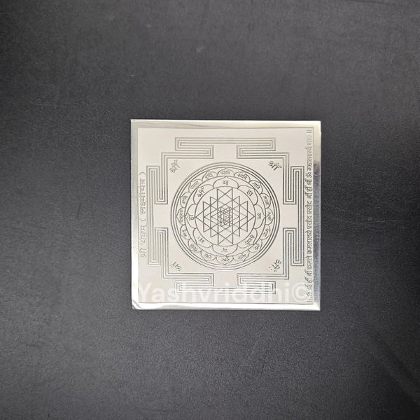 The Silver Plate Shree Yantra (one of the most pure metal as per shastras) is a sacred and powerful yantra dedicated to Maa Tripura Sundari (Lalita Devi), who resides in the central bindu of the Yantra. Known as the King Of All Yantras, it is crafted on pure silver with precise Vedic geometry. The Shree Yantra is believed to bring wealth, success, spiritual harmony, and protection by balancing cosmic energies.shree yantra also denoted to the energies of Goddess Lakshmi and the universe.