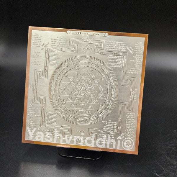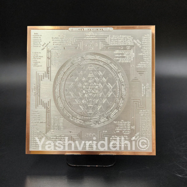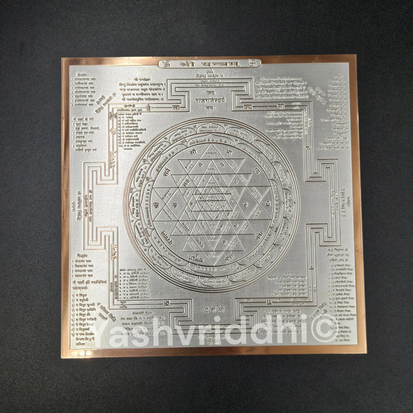 तांबे के साथ सिल्वर प्लेट श्री यंत्र प्रीमियम गुणवत्ता 6.25 इंच