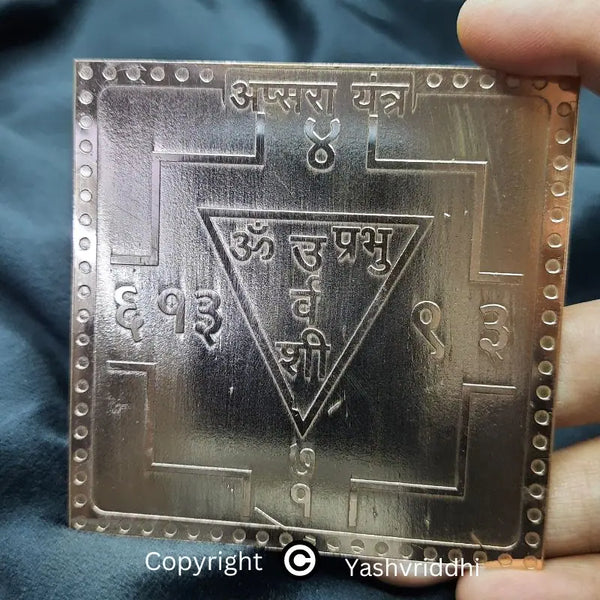 Deity: Rambha Devi and other Apsaras Benefits: Apsara Yantra is used for praising Apsaras – The Nymphs or angelic beauties of heaven. It is also used for gaining mesmerizing and seductive looks. Apsara Sadhna is divine key to beauty, happiness and youthful life and to attain a magnetic personality.