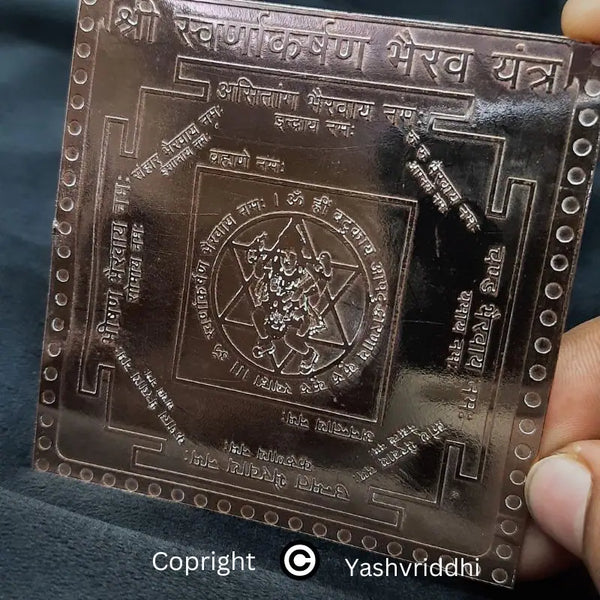 Shree Swaranakarshan Bhairav Yantra It guarantees you an improved life by providing you better jobs. All the money owed and monetary crises can be conquered. Worshiping this yantra allows you to accumulate gold & cash. The Yantra can also delivered to the buyers after proper energization as well & pran pratishtha, but it will cost additionally. Therefore, whose are interested also visit this page and fill the form for activation along with this yantra separately, so that the proper energization & pran pratishtha could be done on their names before the dispatch of the Yantra. Things required for activation procedure of Yantra – One Specific Prayer – Visit This page – Panchgavya (Ghee, Gangajal, Milk, Curd, Honey) – Any one Fruit Juice (Coconut water, Sugarcane Juice, Pomegranate Juice) Abhishek Procedure of Yantra Devotees can do abhishek of Yantra once or twice a week as per convenience and the detailed of abhishek procedure of yantra is given below – Bath Yantra with Holy water – Offer all abhishekam liquid one by one which are Panchgavya (Water, Milk, Curd, Ghee, Honey) and any one Fruit Juice (Coconut water, Pomegranate Juice, Sugarcane Juice) – Now wipe off yantra with a clean cloth and place it on pedestal Ingredients required for Worship procedure of Yantra – Gangajal – Clean cloth – Sandal paste – Tulsi leaf – Dhoop & Agarbatti – Sweets, fruits and other eatable – A picture of deity related to yantra Worship Procedure of Yantra – First of all place the yantra on a metal plate – Sit facing east direction – Bath the yantra with Gangajal – Wipe it off with clean cloth – Apply tika of sandal paste on the yantra and place one tulsi leaf on the yantra so the tulsi rests on the yantra nicely – Chant mantra of god/ goddess – Show Dhoop/ Agarbatti to Yantra – Offer some sweet, fruits and other eatable to the yantra – Speak out your wish loudly in front of the yantra.