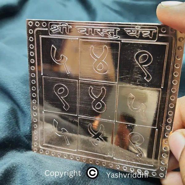 Shri Vastu Yantra Beej Mantra - ॐ श्रीं ह्रीं श्रीं नम:” या “ॐ श्रीं ह्रीं श्रीं कमले कमलालये प्रसीद प्रसीद श्री ह्रीं श्री ॐ महालक्ष्म्यै नम:” Benefits - A Vastu yantra prohibits negativity from entering the home. It spreads a protective shield encompassing the home and thereby brings positivity into the home. It fights against the negative forces of the environment and helps maintain harmony within the members of the family. The copper Yantra is made up of pure top quality copper metal sheet having 99.8% copper and 0.02% silver content. The presence of silver increases the power of the yantra manifold times more. As per Hindu Shastras the Copper Yantra is considered SACRED, AUSPICIOUS & immensely powerful. 3 X 3 inches Pure Copper Yantra is 28 Guage or approx 0.6 mm thick that weighs approx 50 gms. The Yantra can also delivered to the buyers after proper energization as well & pran pratishtha, but it will cost additionally. Therefore, whose are interested also visit this page and fill the form for activation along with this yantra separately, so that the proper energization & pran pratishtha could be done on their names before the dispatch of the Yantra.