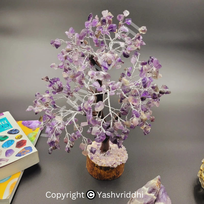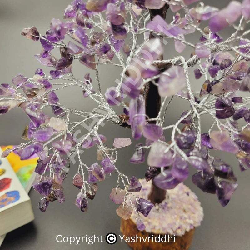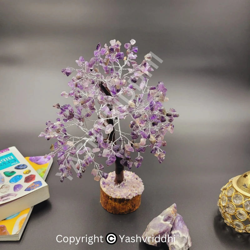 Amythest Crystals and Gemstones,Tree Showpiece for Good Luck Home Decor Item Bonsai Money Tree Plant Gift Item Figurine with 500 beads,