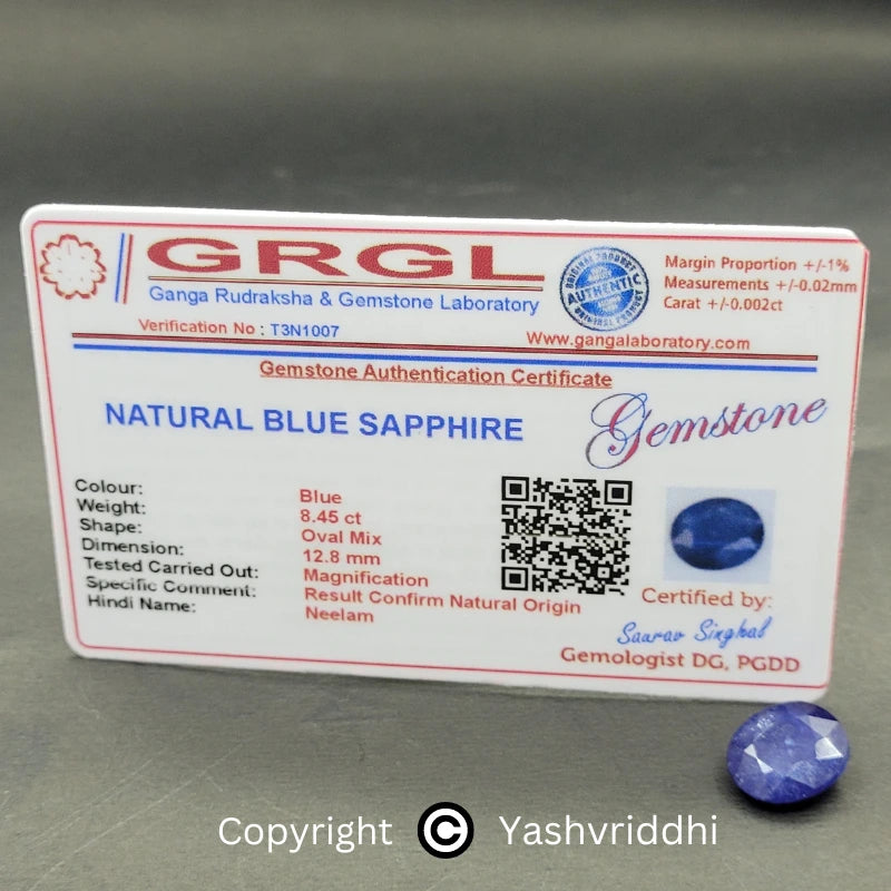 Bankok Blue Sapphire/ Neelam in 8.45 ct Benefits – the 6 most powerful pukhraj stone or yellow sapphire gemstone benefits as per Vedic astrology: .Benefits of relationships. .Invites Success. .Heals health. .Calms Mind. .Invite positive...