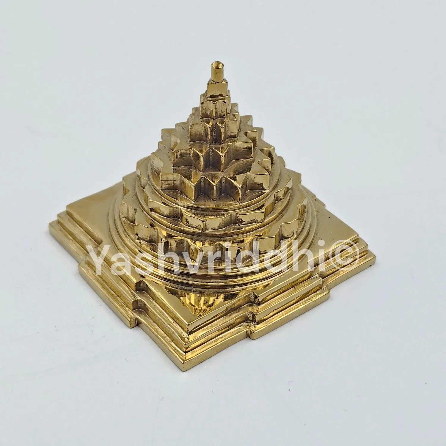 The Akhand Meru Shree Yantra, crafted from solid brass and plated with gold plating , is one of the most powerful and auspicious Vedic yantras. With a compact size, this yantra represents the divine geometry of Goddess Lakshmi and the cosmic energies of abundance, prosperity, protection, and harmony. The 3D Meru form radiates high-frequency vibrations that uplift the environment, correct Vastu defects, remove financial obstacles, and attract continuous wealth and fortune. Its heavy brass build and glossy gold plating give it a luxurious, long-lasting finish—perfect for home temples, pooja rooms, offices, shops, and gifting. Crafted with precision, this Akhand (Unbroken) Meru design symbolizes stability, strength, and uninterrupted prosperity.
