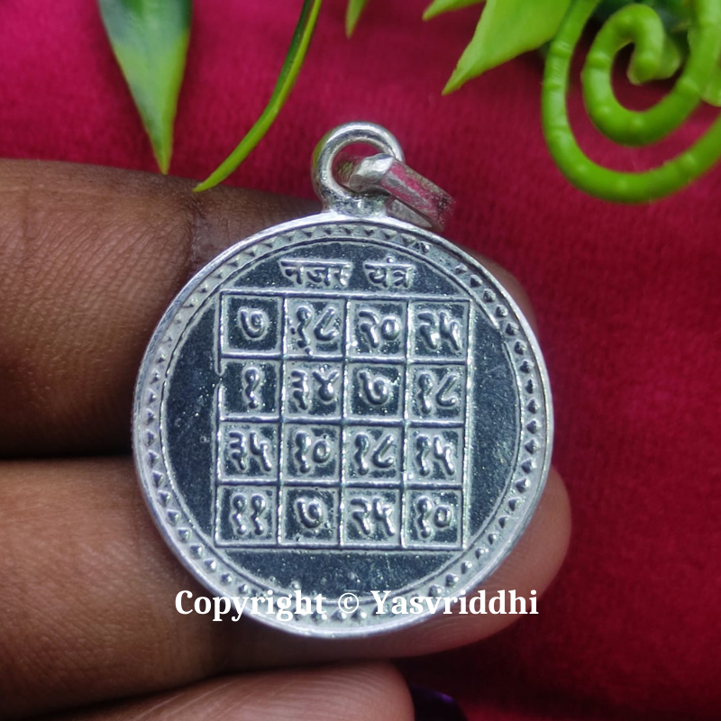 - Finely etched Shree Nazar Yantra geometry to ward off the evil eye