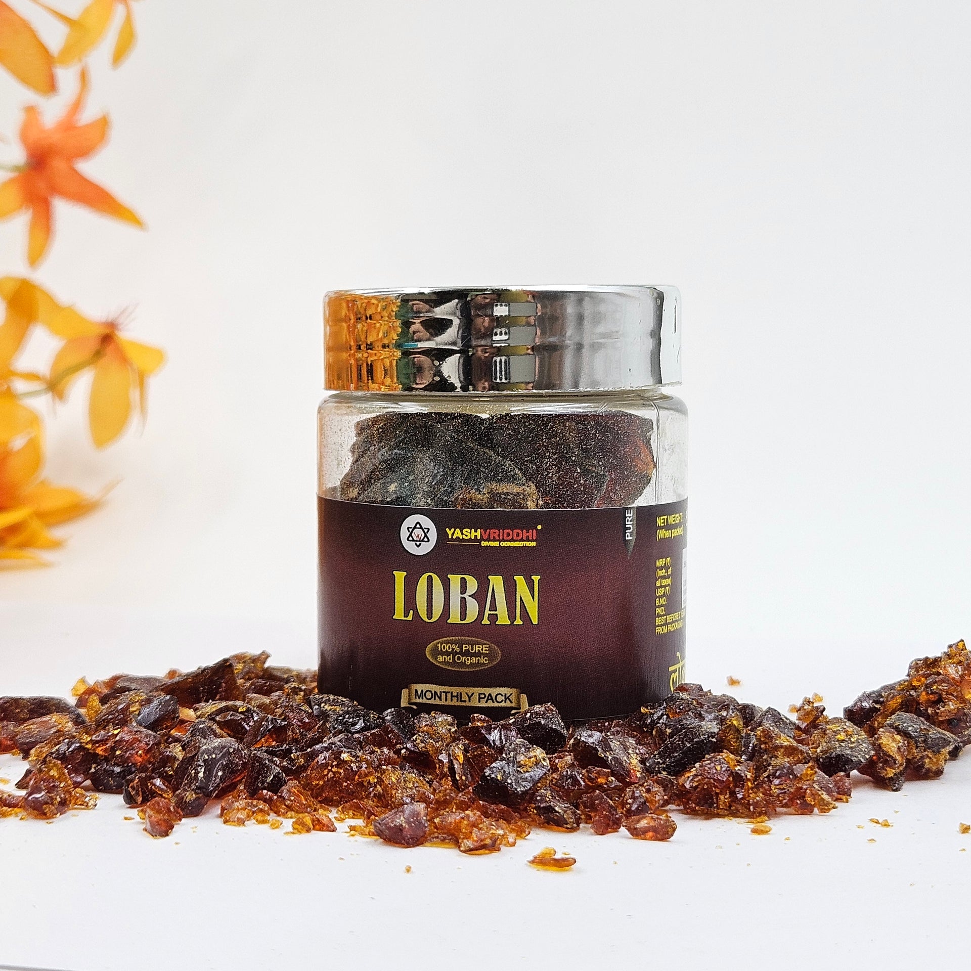 Experience the divine aroma of Pure Loban made from high-quality natural benzoin resin. Known for its rich, calming fragrance, loban has been used for centuries in spiritual rituals, meditation, and purification practices. When burned, it releases a soothing smoke that helps cleanse negative energies, uplift the environment, and create a peaceful, sacred atmosphere. Ideal for daily puja, hawan ceremonies, and meditation sessions.