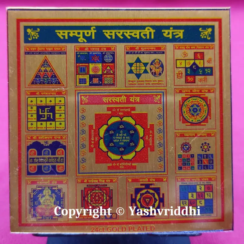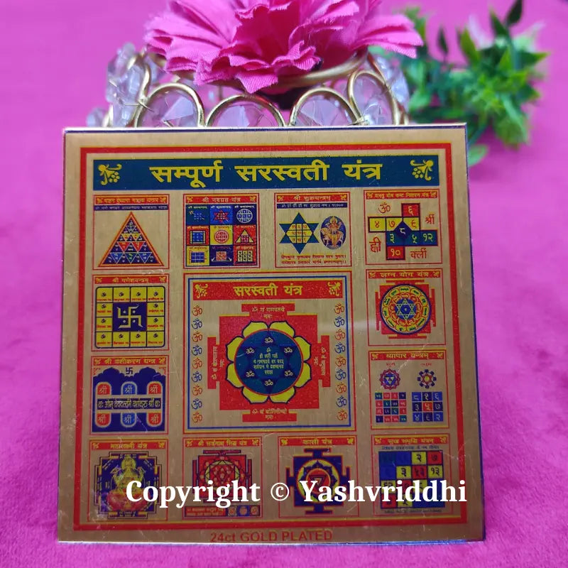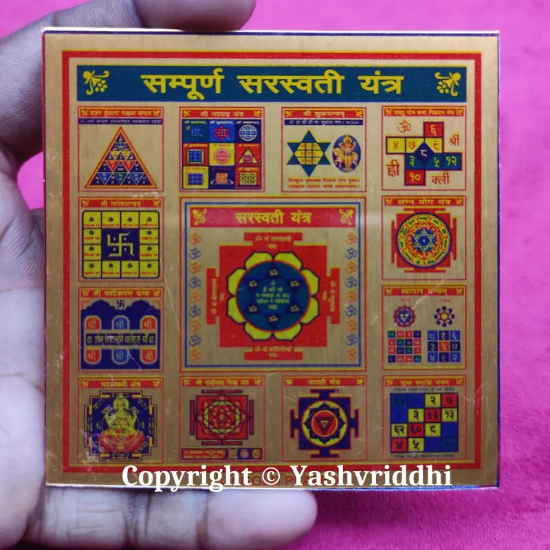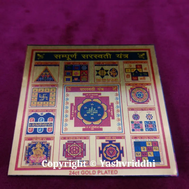 The Shree Saraswati Yantra is a revered emblem representing Goddess Saraswati, the deity of knowledge, creativity, and wisdom. It invokes blessings for learning, artistic expression, and intellectual growth. By meditating on or displaying the Shree Saraswati Yantra, one seeks guidance for enhancing skills, embracing creativity, and fostering spiritual insight. It resonates with the energies of eloquence and inspiration, promoting clarity of thought and expanding consciousness. This yantra holds transformative powers, aligning with Saraswati's blessings, empowering seekers to tap into their potential and illuminating the path of knowledge. It serves as a conduit for Saraswati's grace, nurturing a life enriched with wisdom and artistic brilliance.