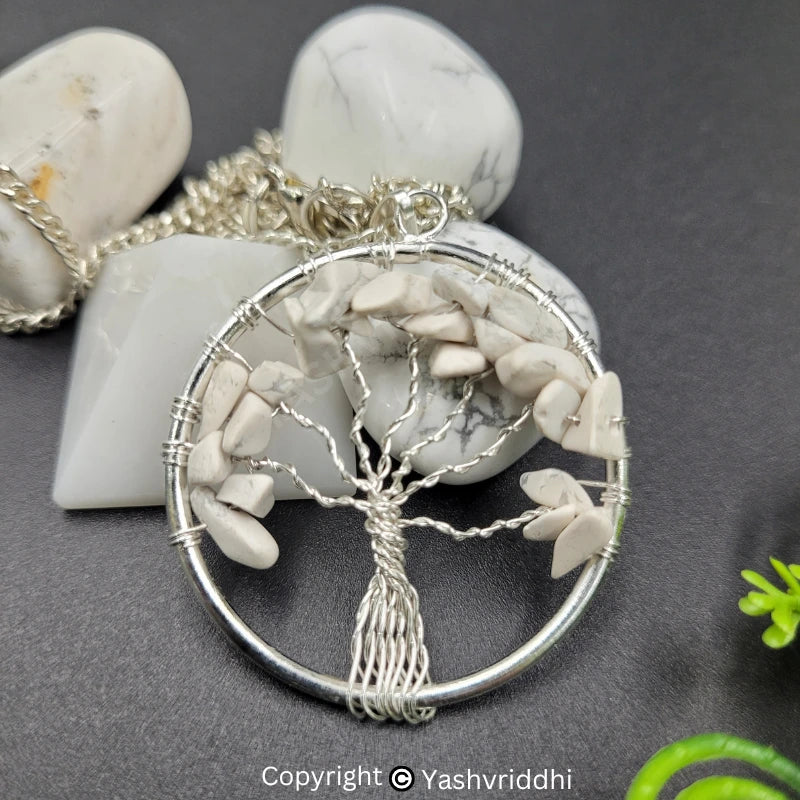 howlite crystal tree pendant Shape - Round | Charged By Reiki Grand Master & Vastu Expert; Natural Healing Stone for Reiki Healing, Crystal Healing, Numerology, Tarot, Astrology & Feng Shui pendant without chain A simple,...