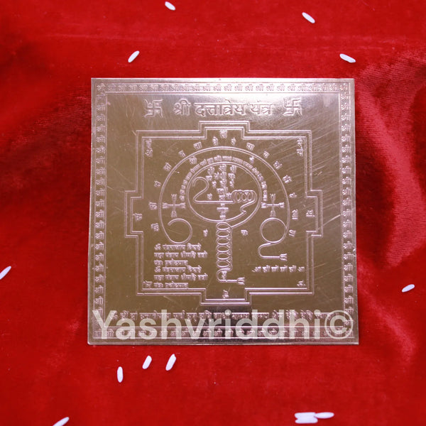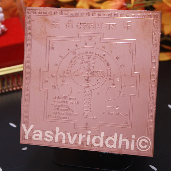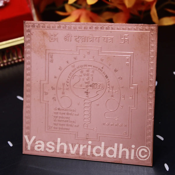 The Shree Dattatreya Yantra is a powerful sacred geometric diagram dedicated to Lord Dattatreya, the combined form of Brahma, Vishnu, and Mahesh (Shiva). This yantra is known for removing obstacles, clearing negative energies, and blessing the devotee with wisdom, knowledge, protection, and spiritual upliftment. Crafted on a premium-quality copper plate, this yantra carries high spiritual vibrations and is ideal for pooja rooms, offices, homes, meditation spaces, and spiritual altars. Each piece is accurately etched, finely polished, and ready to be placed for spiritual benefits.