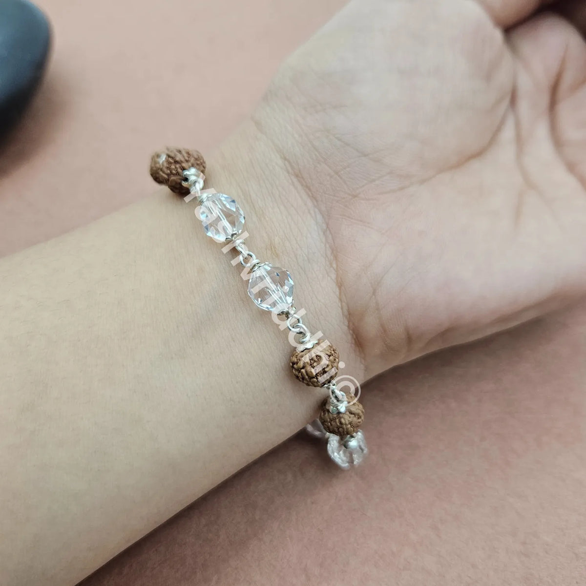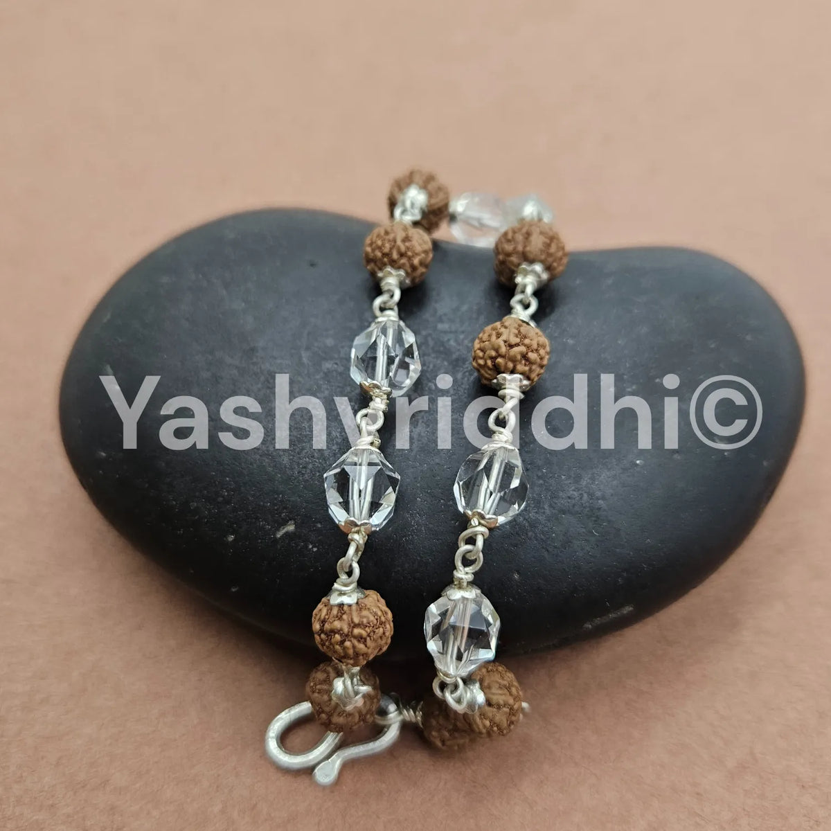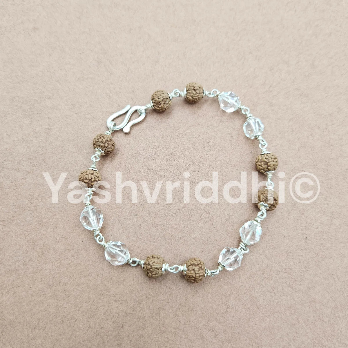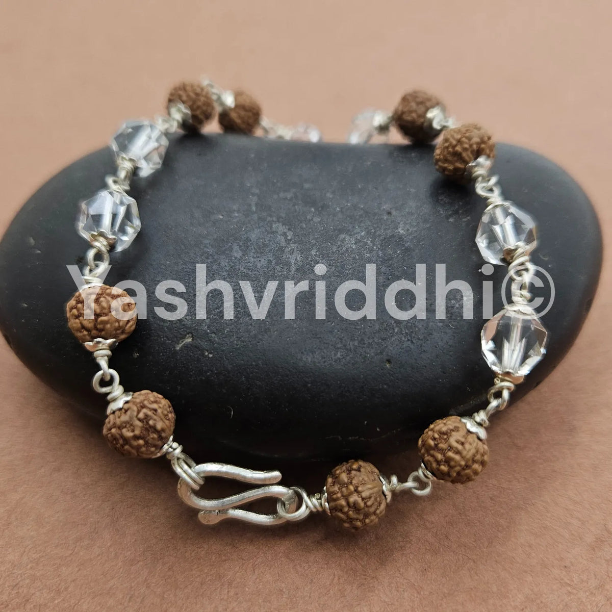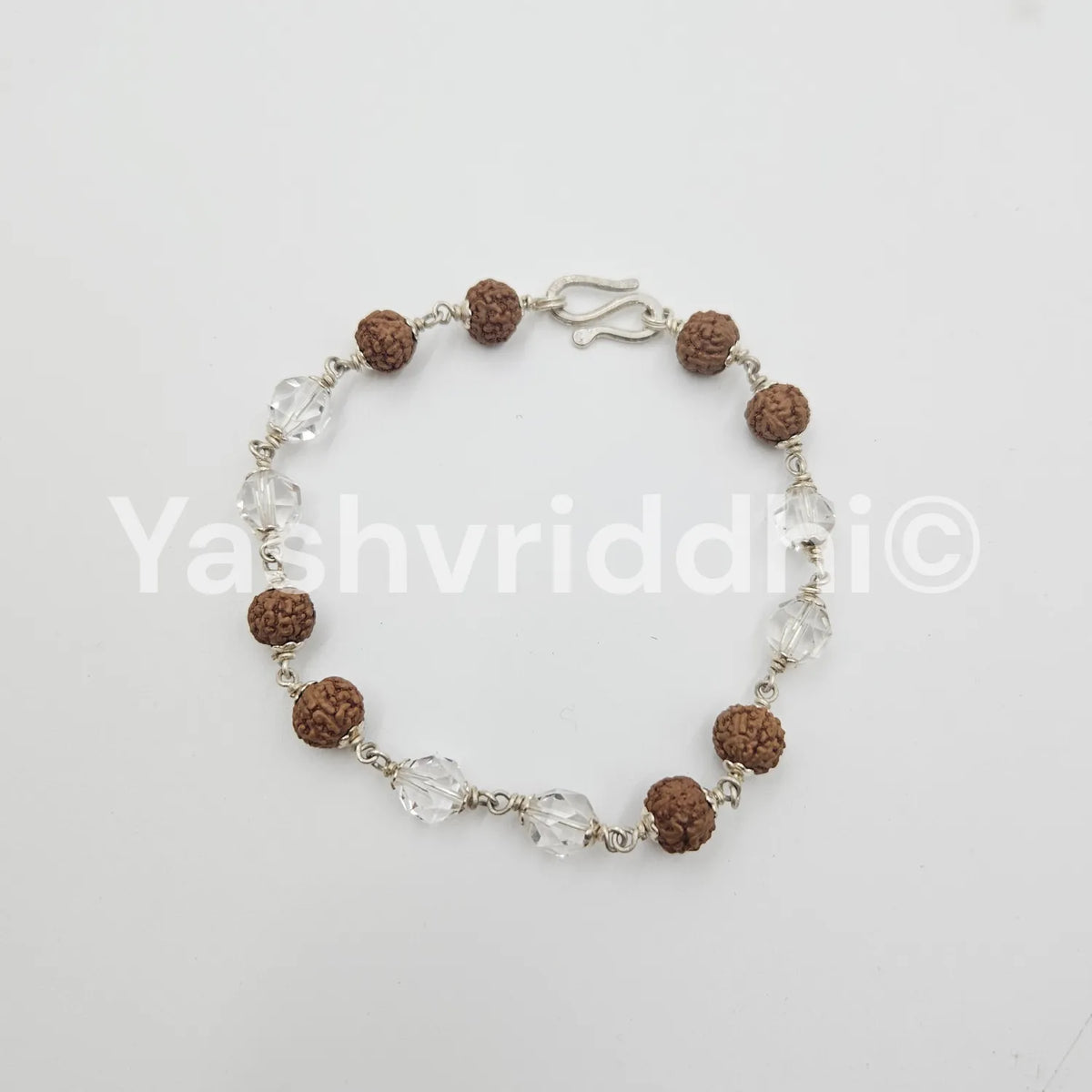 Pure Silver Rudraksha & Sphatik Bead Bracelet | 8 mm Beads | Premium Quality | Spiritual Bracelet for Protection, Positivity & Divine Energy